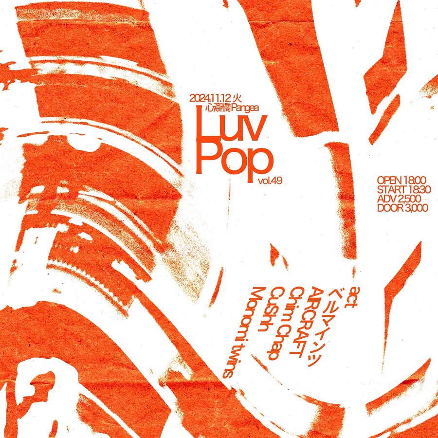 Luv Pop vol.49W/ベルマインツ,AIRCRAFT,Chim Chap,Monomi twinsOPEN/START 18:00/18:30ADV/DOOR ¥2,500/¥3,000(+1drink)